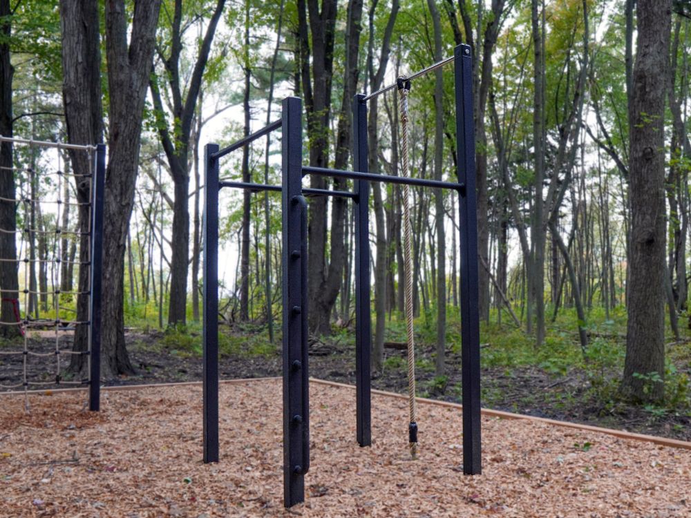 Ce module corde à grimper et polyvalent ne requiert que le poids corporel de l’utilisateur pour performer des exercices fonctionnels en plein air. Il s’agit d’exercices de conditionnement physique, d’échauffement et d’étirement approuvés par des kinésiologues certifiés.